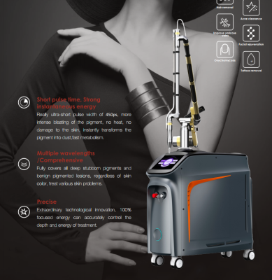 - Độ rộng xung cực ngắn 450ps, không gây nhiệt, không gây tổn thương da, chuyển đổi sắc tố ngay lập tức thành bụi, nhanh chóng chuyển hóa.
